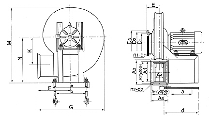 本風(fēng)機可做左右旋轉兩種形式出風(fēng)口角度,可根據用戶(hù)需要而定制。風(fēng)機傳動(dòng)方式:NO4-6.3為A式傳動(dòng),NO7.1-12.5為D式傳動(dòng)。